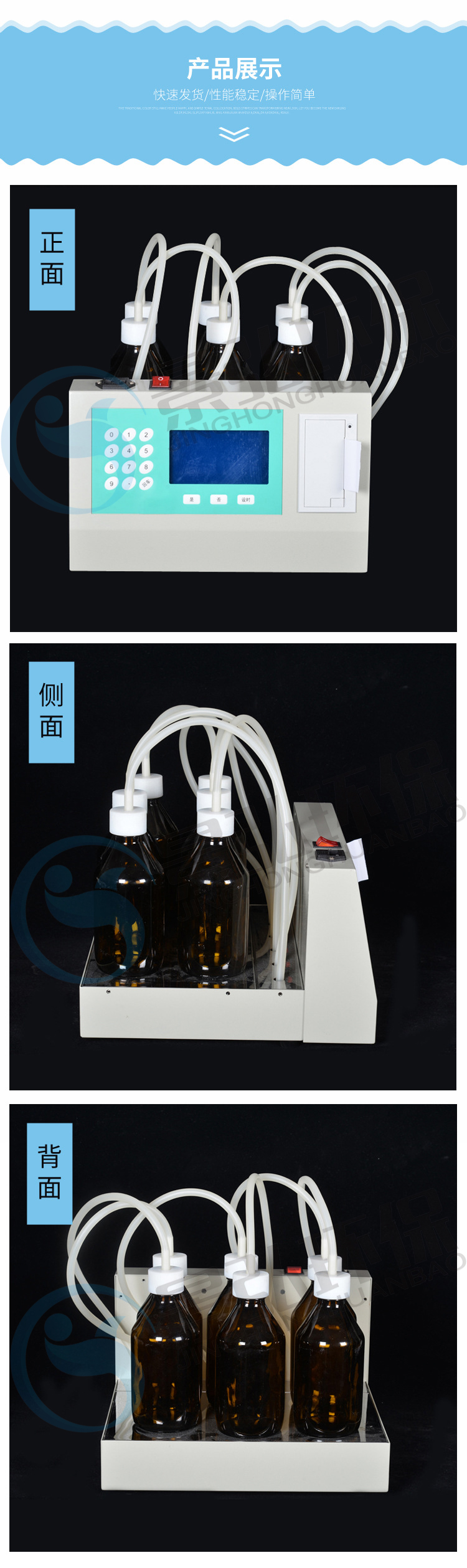 自動攪拌裝置連續(xù)攪動增強氧的傳輸,機械裝置沒有馬達,減小維護量,保證取得準(zhǔn)確結(jié)果。氧化有機物產(chǎn)生的CO2由裝在瓶蓋中的氫氧化鋰吸收。 連續(xù)的圖形顯示 BOD測試裝置電子貯存測量數(shù)據(jù)并更新結(jié)果。在測試的任何時間,都可以在LCD顯示屏上檢測到BOD變化的速率。測量中可貯存480點數(shù)據(jù)。