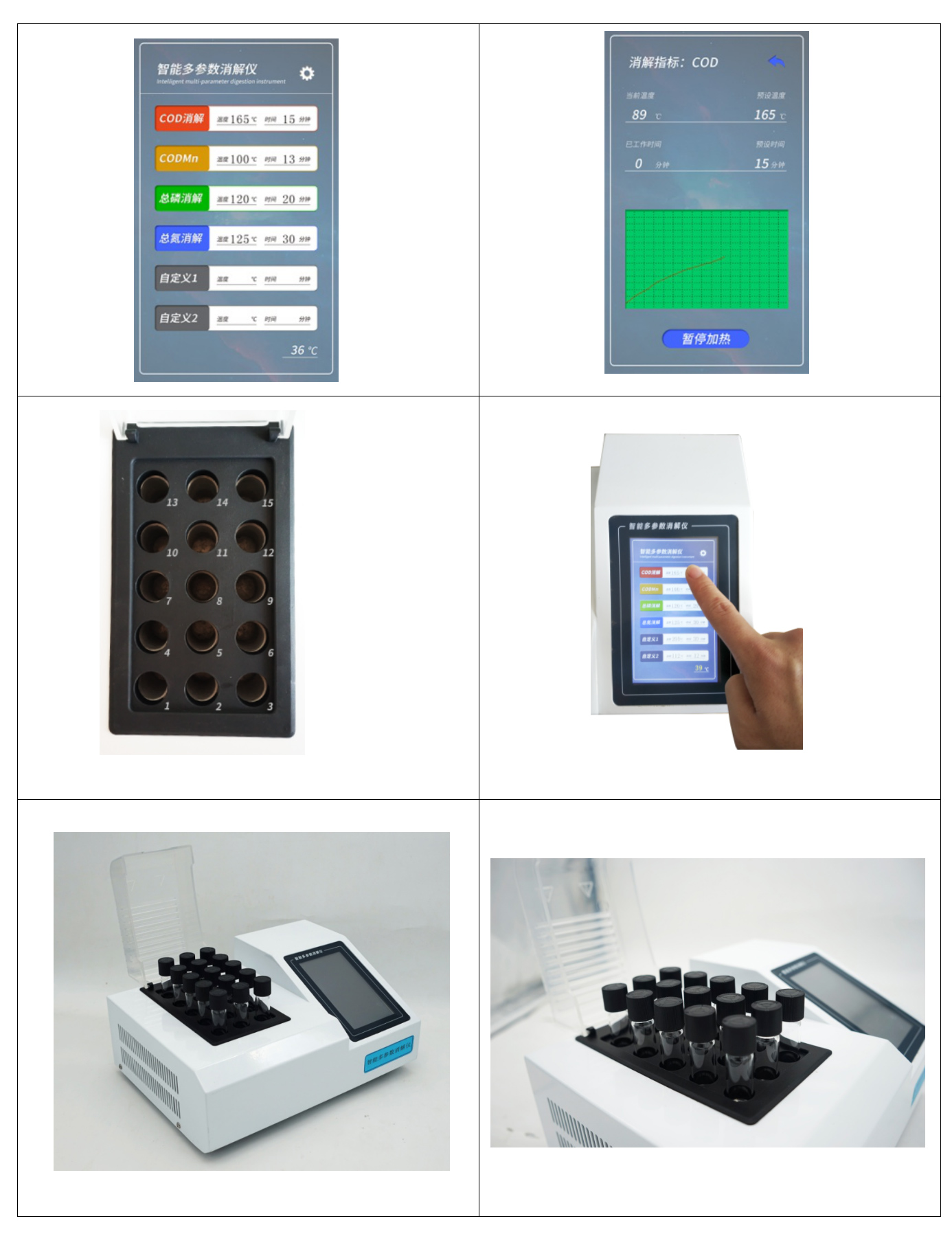 2.一鍵式啟動消解,儀器預(yù)設(shè)常用消解指標參數(shù)(如COD、總磷、總氮等),一鍵選擇相應(yīng)指標進入消解操作。