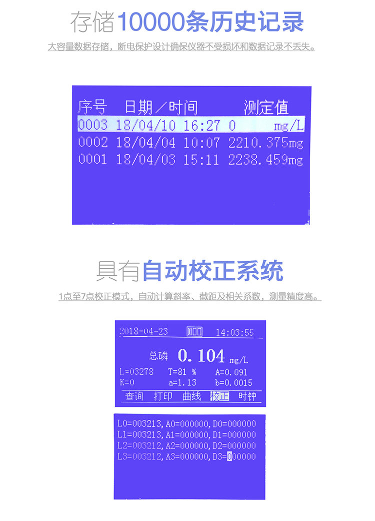 5. 1點至7點校正模式,自動計算斜率、截距及相關系數(shù),測量精度高。