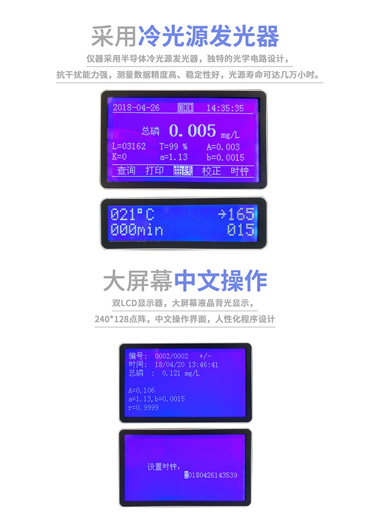JH-TP202型總磷快速測定儀符合GB11893-89 規(guī)定的鉬酸銨分光光度法,將經(jīng)典的酸銨分光光度法與計算機(jī)技術(shù)結(jié)合起來,應(yīng)用微電腦光電子比色檢測原理取代傳統(tǒng)的目視比色法,測量分辨率大大提高。該產(chǎn)品具有自動PID控溫、雙液晶顯示、交直流兩用、自動調(diào)零、濃度直讀、曲線存儲、自動打印等特點,儀器操作簡便,人機(jī)交互式操作,使用者無需復(fù)雜的專業(yè)知識即可應(yīng)用本產(chǎn)品??蓮V泛地應(yīng)用于廠礦企業(yè)排污口監(jiān)測、城市污水處理工廠進(jìn)出口監(jiān)測、江河湖泊水質(zhì)監(jiān)測和污水治理設(shè)施過程控制之中。