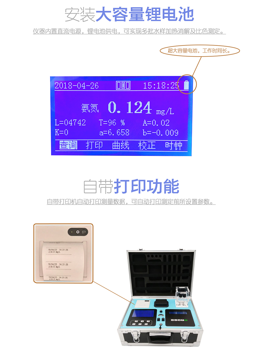 便攜式總氮檢測儀將經(jīng)典的比色法與計算機(jī)技術(shù)結(jié)合起來,應(yīng)用微電腦光電子比色檢測原理取代傳統(tǒng)的目視比色法,測量分辨率大大提高。實現(xiàn)了測定過程的自動化。可廣泛地應(yīng)用于廠礦企業(yè)排污口監(jiān)測、城市污水處理工廠進(jìn)出口監(jiān)測、江河湖泊水質(zhì)監(jiān)測和污水治理設(shè)施過程控制之中。