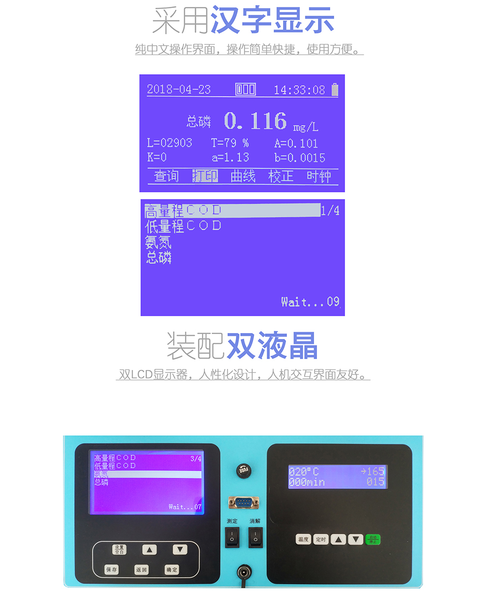 1.雙LCD顯示器,大屏幕液晶顯示,中文操作界面,人性化程序設(shè)計。