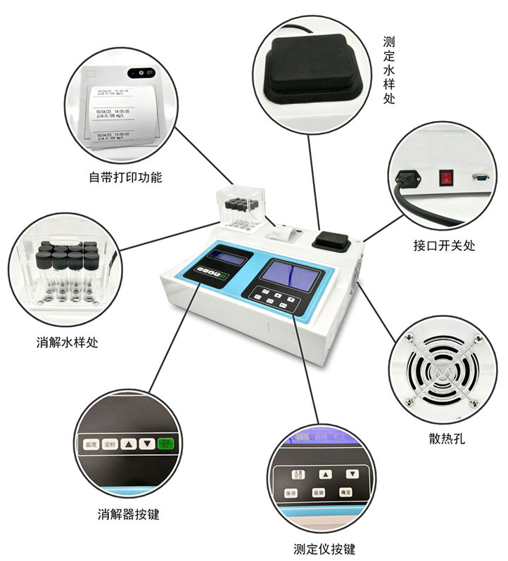 一體式水質(zhì)測(cè)定儀自帶熱敏式打印機(jī)可直接打印測(cè)量數(shù)據(jù)和歷史數(shù)據(jù)。